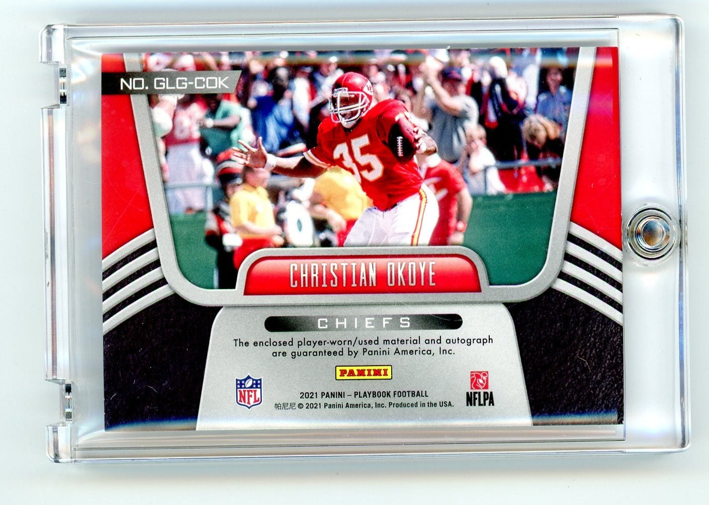 Christian Okoye 2021 Panini Playbook Goal Line Graphs & relic #'d 194/199
