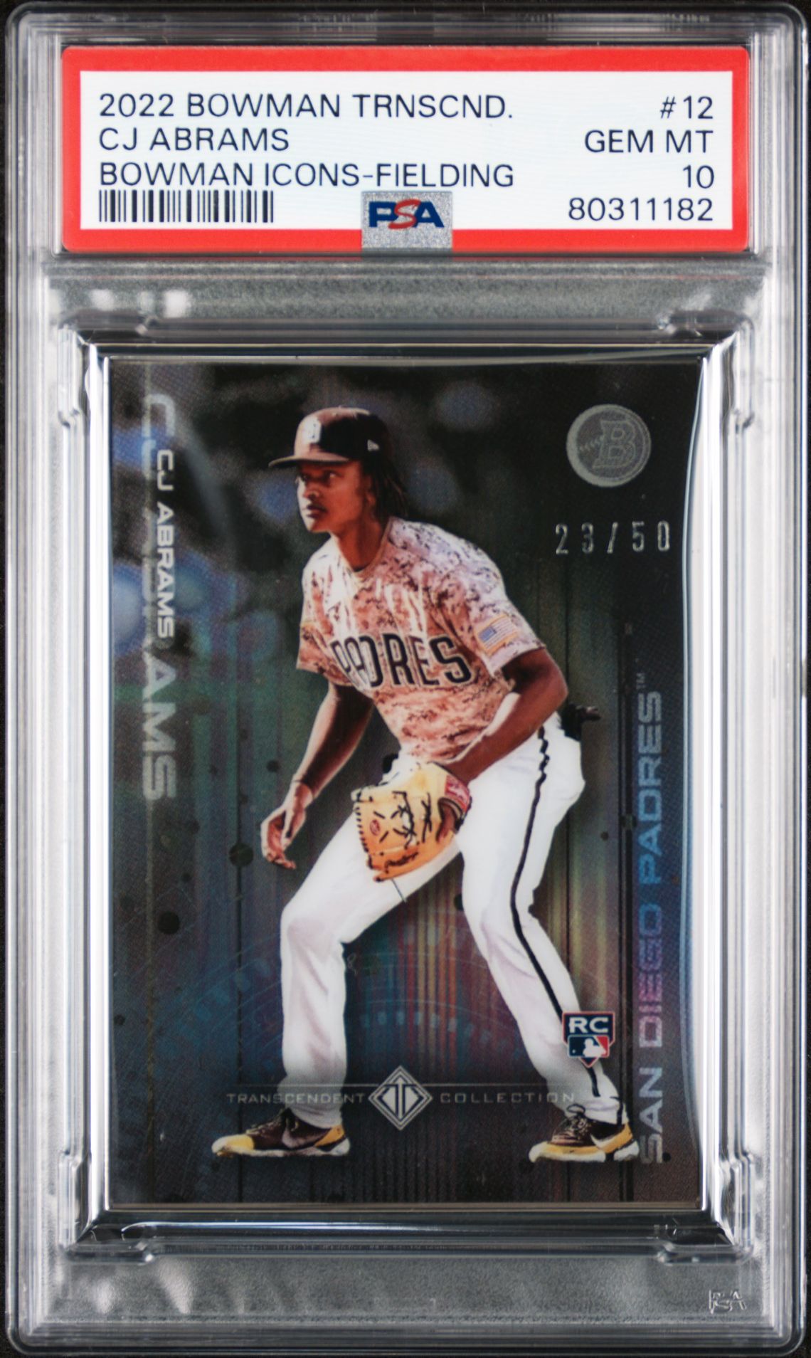 CJ Abrams 2022 Bowman Transcendent Collection Bowman Icons /50 Fielding PSA 10