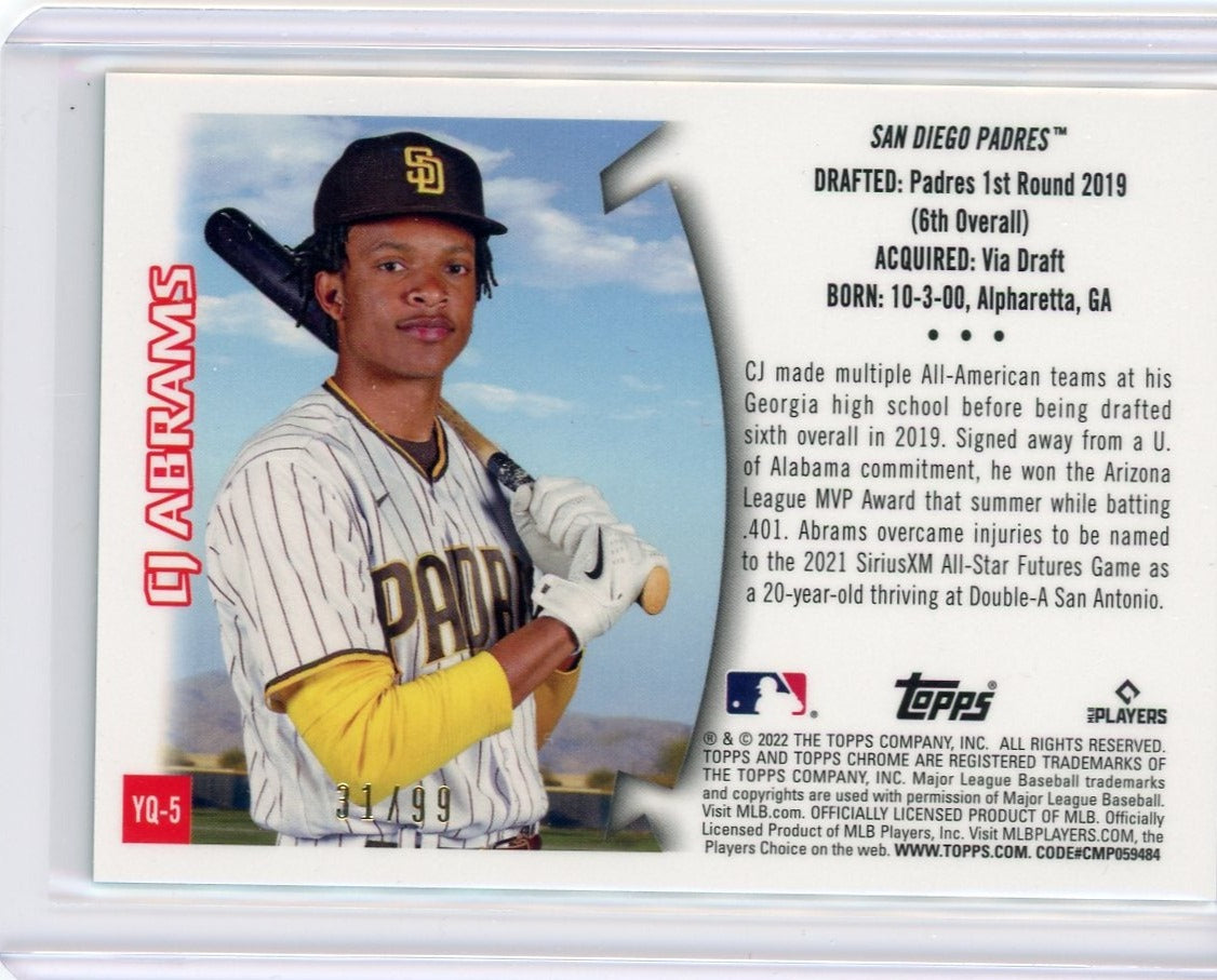 CJ Abrams 2022 Topps Chrome Sonic Youthquake green refractor rookie card #'d 31/99