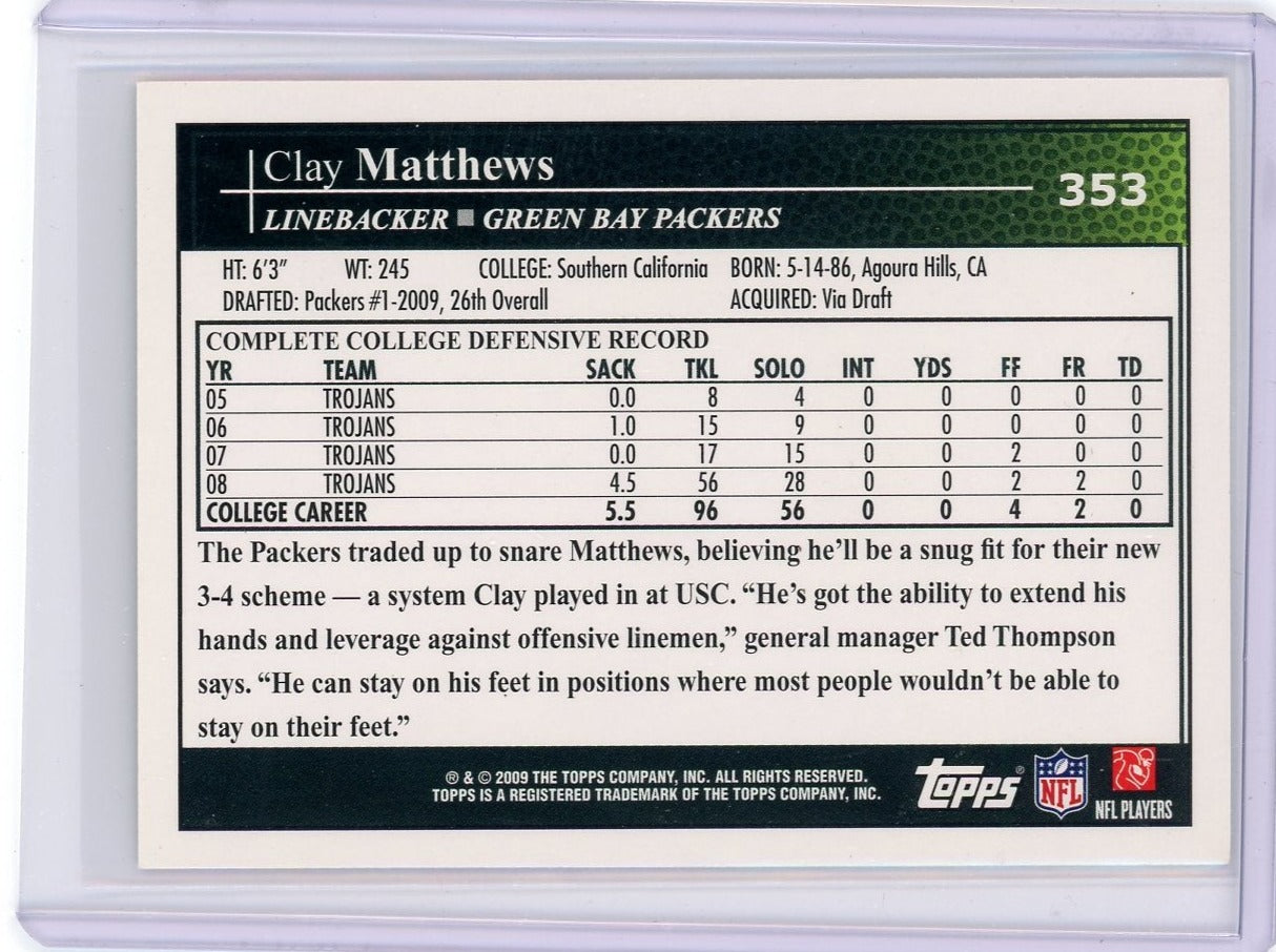 Clay Matthews 2009 Topps rookie card #353