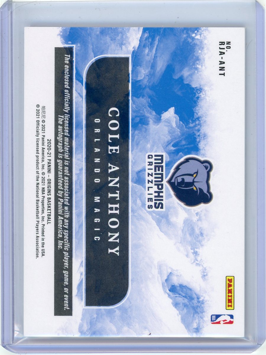 Cole Anthony 2020 Panini Origins Rookie Patch Autograph Red #'d 12/75