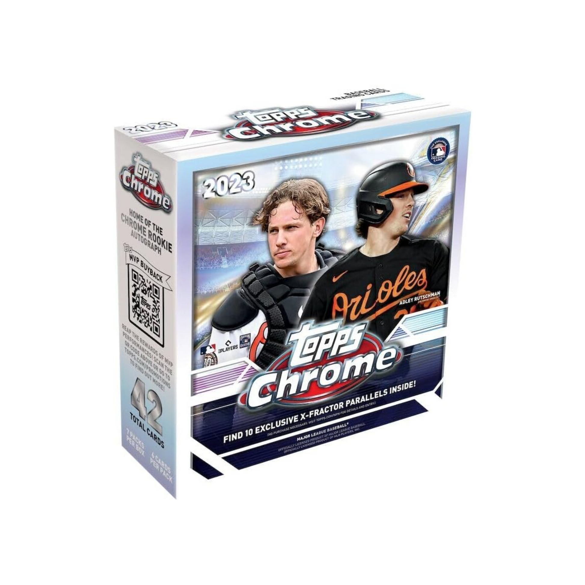The 2023 Topps Chrome Baseball Factory Sealed Monster Box is a new and improved version of 2023 Topps Chrome and comes complete with an all-new lineup of eclectic inserts and beautiful parallels.