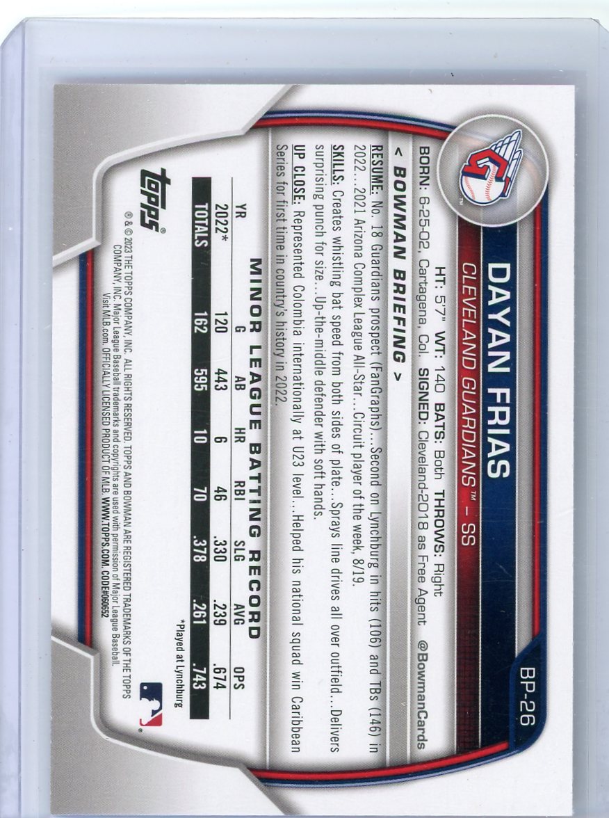 Dayan Frias 2023 Bowman Paper Prospects Pink #'d 096/175