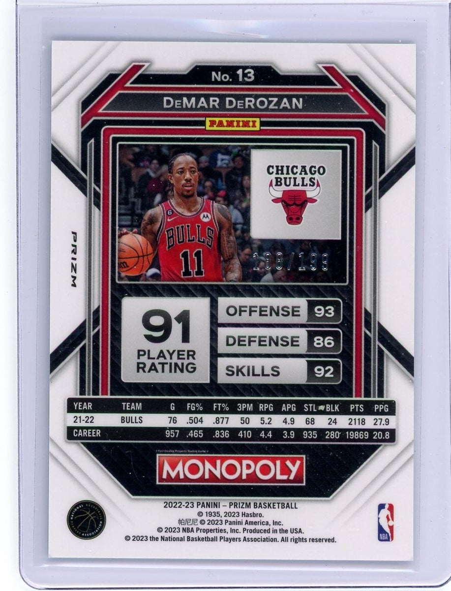 DeMar DeRozan 2022-23 Panini Prizm Monopoly light blue prizm #'d 188/199