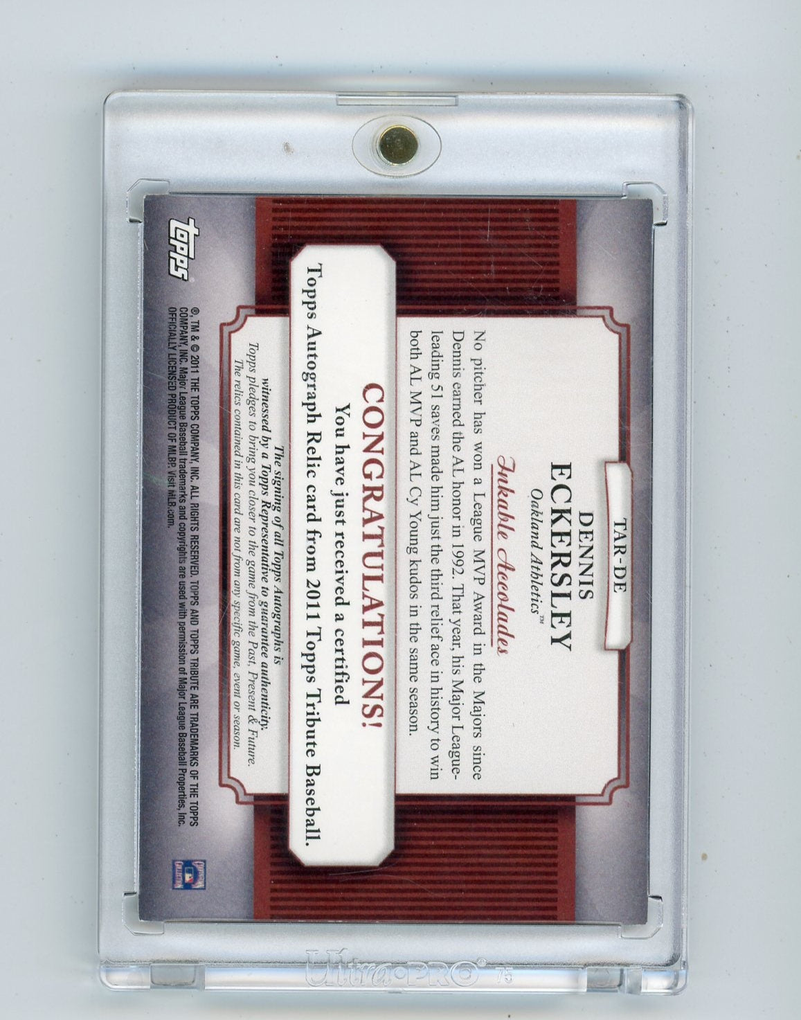 Dennis Eckersley 2011 Topps Tribute Autograph Relic Green #'d 06/75