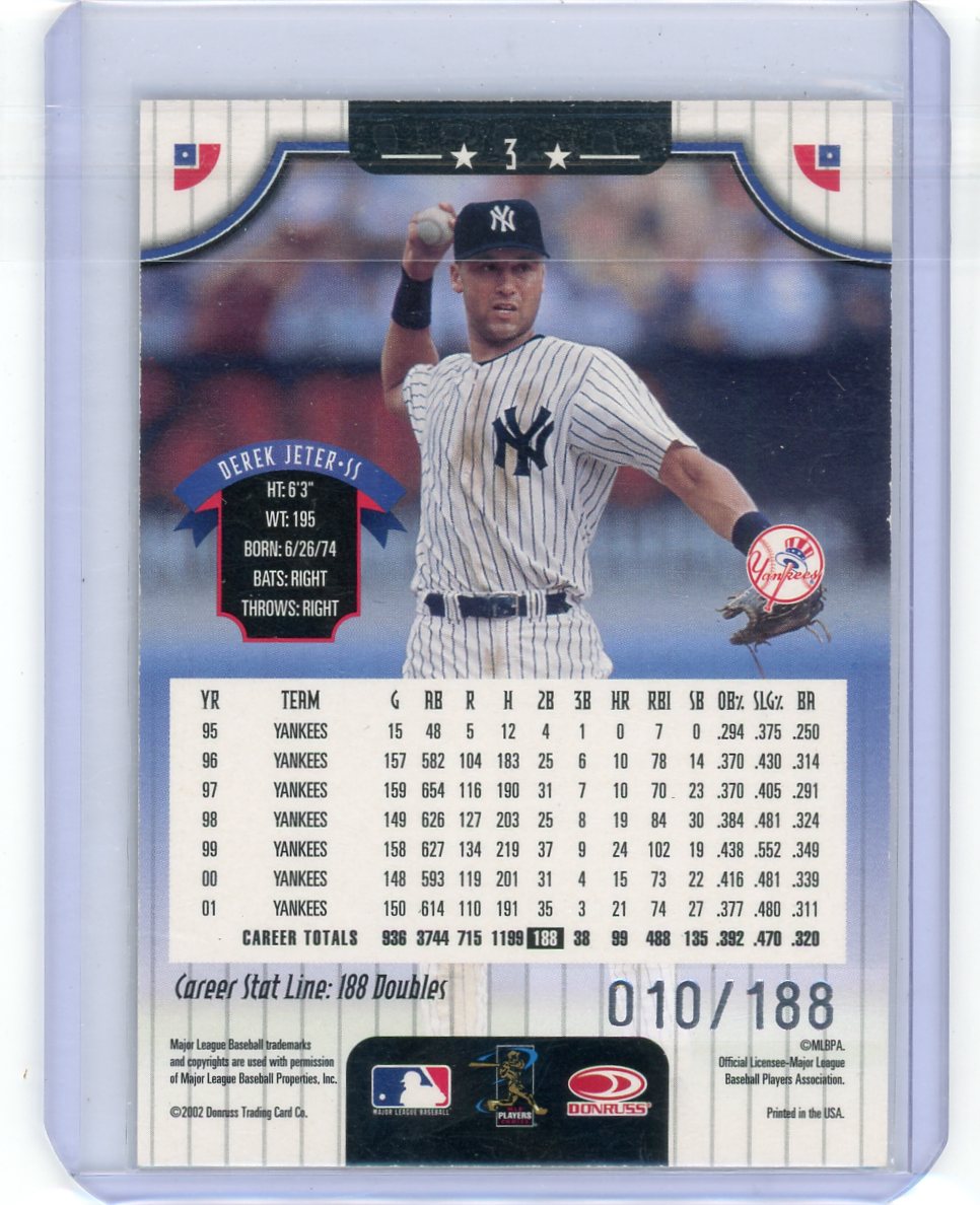 Derek Jeter 2002 Donruss Stat Line Career #'d 010/188