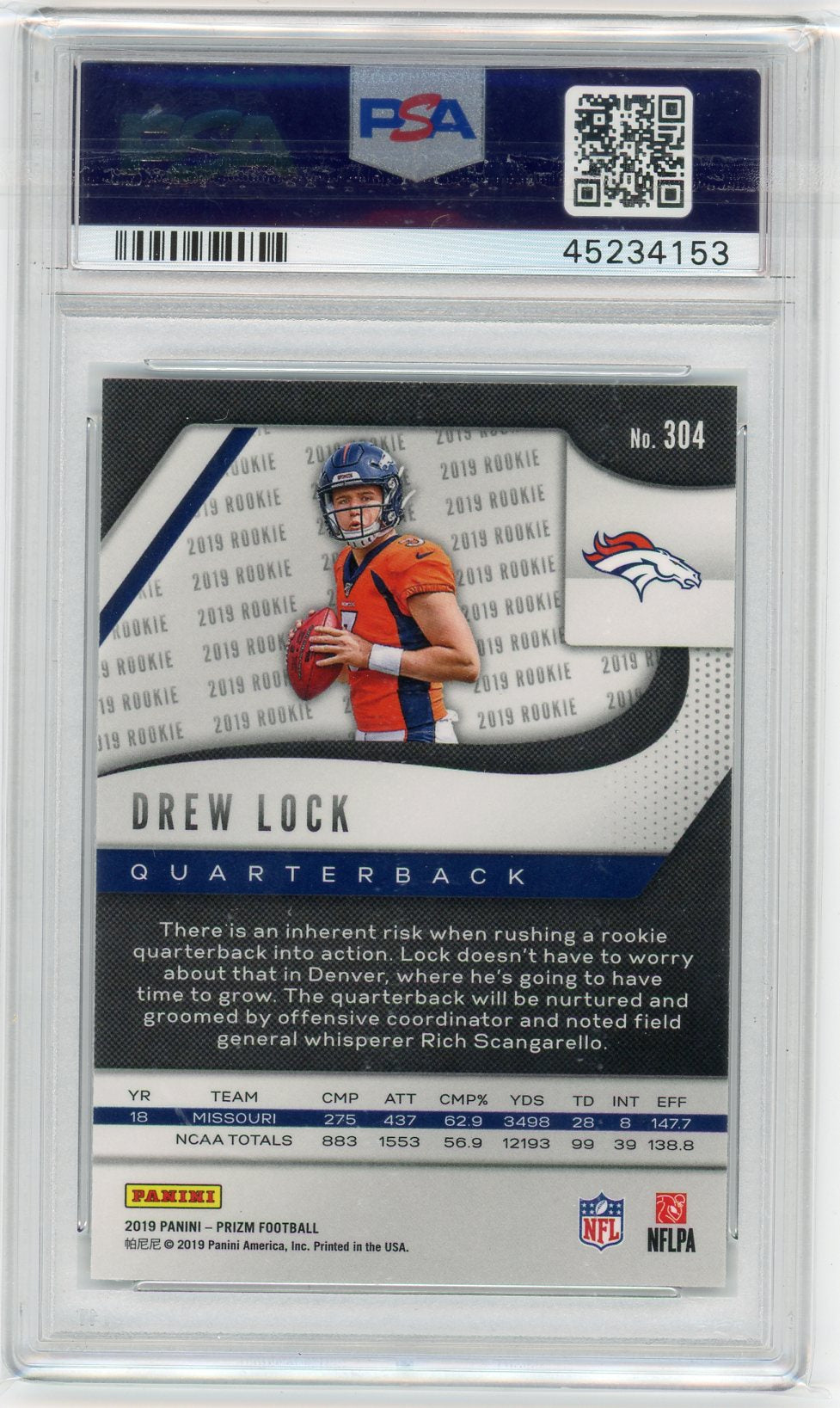 Drew Lock 2019 Panini Prizm Rookie PSA 10