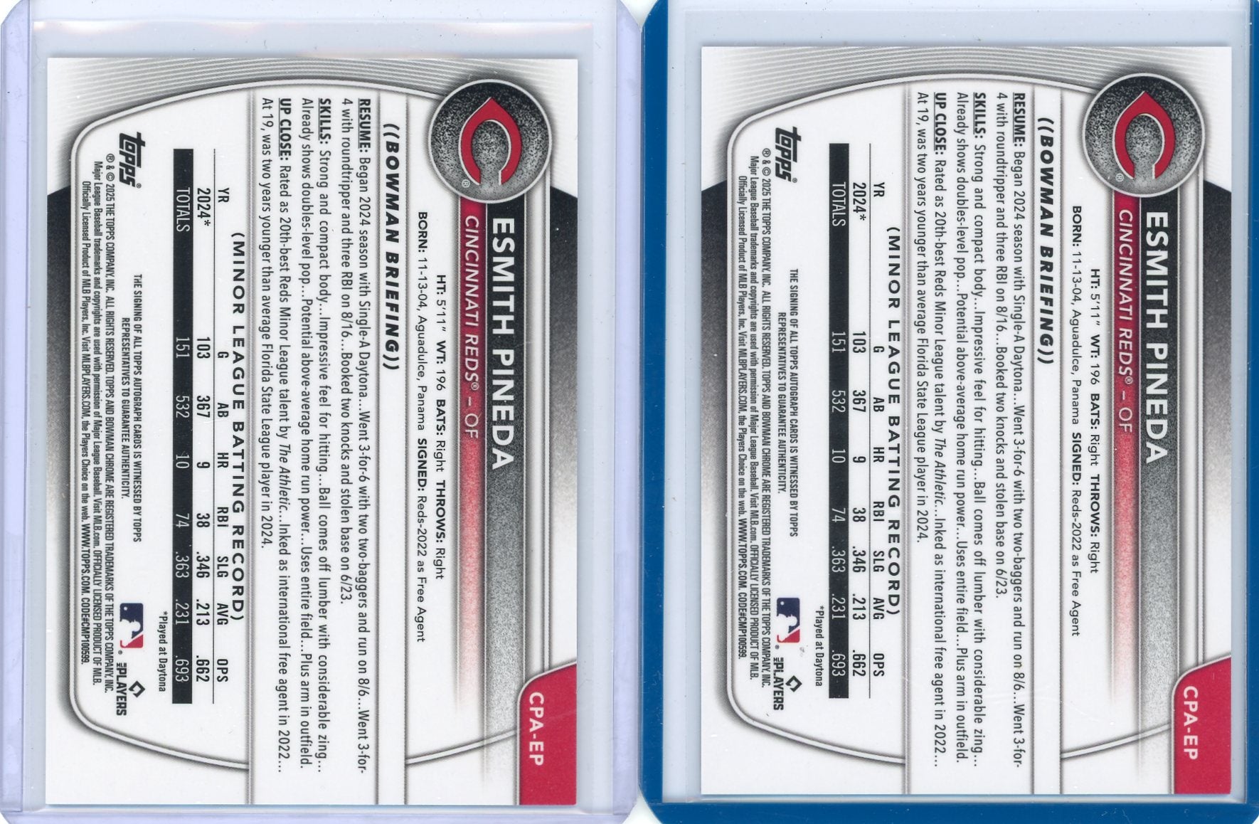 Esmith Pineda 2025 1st Bowman Chrome 2-card lot auto blue xfractor /150 + base