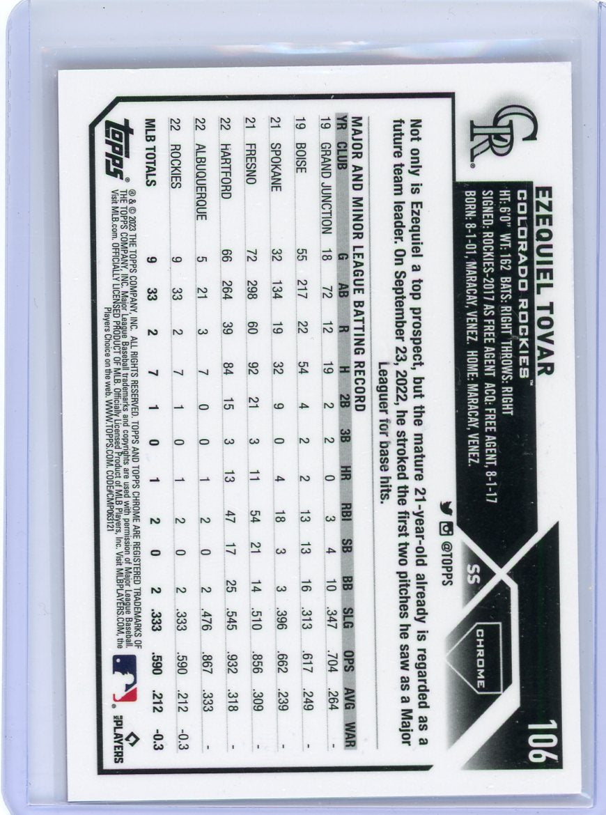 Ezequiel Tovar 2023 Topps Chrome fuchsia mini diamond ref. rookie card #'d 294/350
