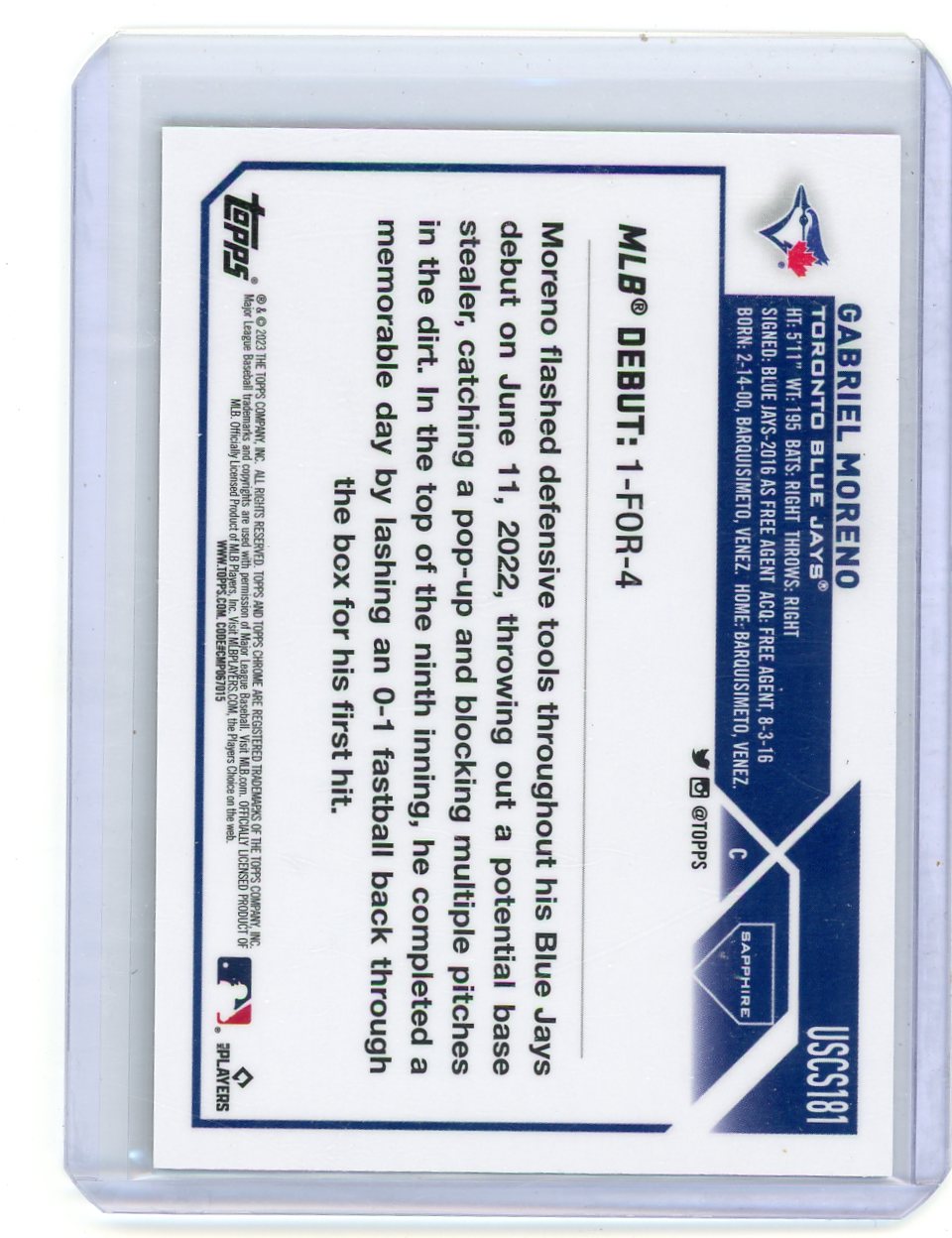 Gabriel Moreno 2023 Topps Chrome Sapphire Rookie Debut RC Gold Sapphire #'d 31/50