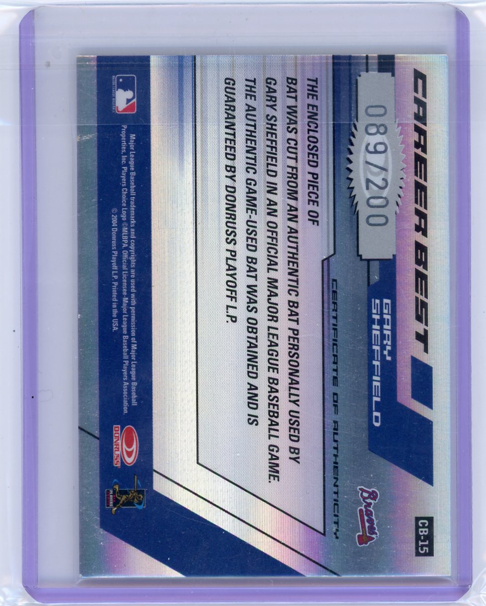 Gary Sheffield 2004 Donruss Elite Career Best bat relic green #'d 089/200
