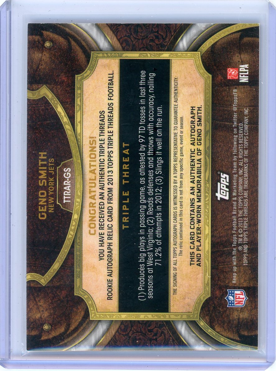 Geno Smith 2013 Topps Triple Threads Rookie Patch Autograph #'d 61/75
