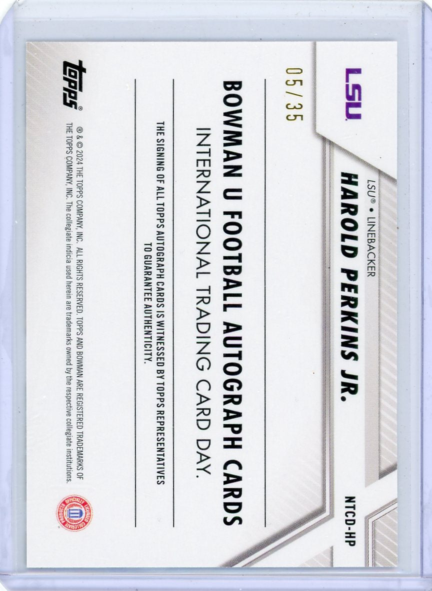 Harold Perkins Jr. 2024 Bowman U Topps International Trading Card Day autograph #'d 05/35