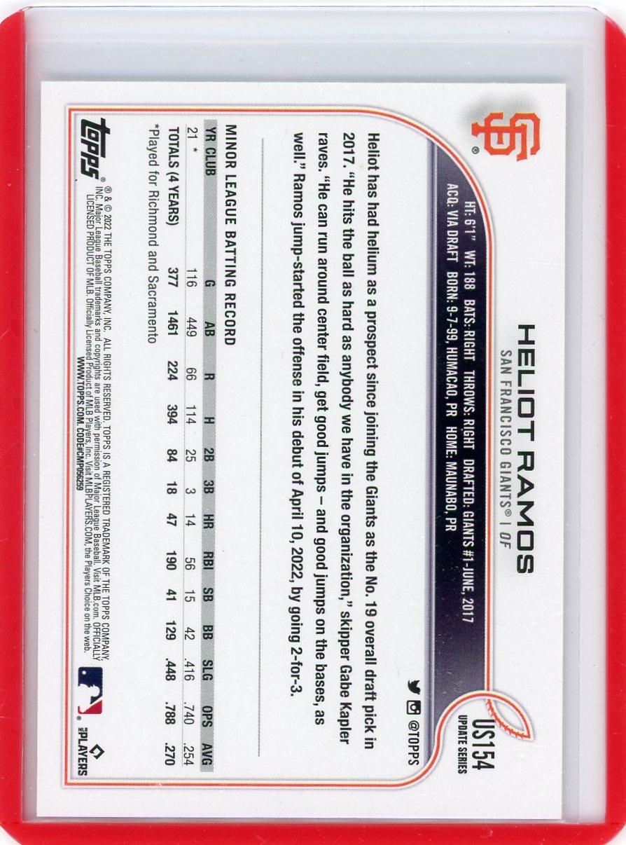Heliot Ramos 2022 Topps Update SP/Image Variation rookie card