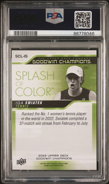 Iga Swiatek 2023 Upper Deck Goodwin Champions Splash of Color 3D PSA 10