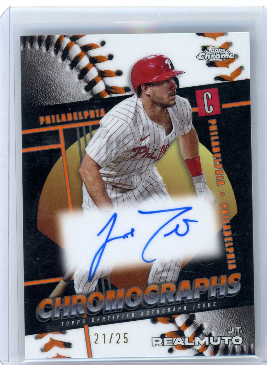 J.T. Realmuto 2025 Topps Chrome Chromographs Orange Auto #'d 21/25