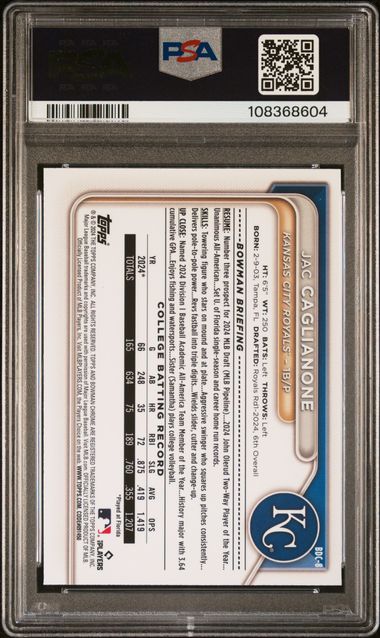 Jac Caglianone 2024 Bowman Sapphire Edition 1st Bowman PSA 10