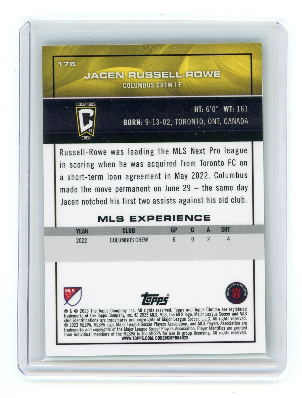 Jacen Russell-Rowe 2023 Topps Chrome MLS neon green lava ref. rookie card #'d 48/99
