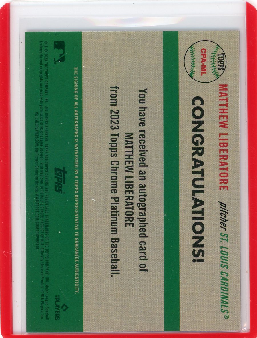 Matthew Liberatore 2023 Topps Chrome Platinum Anniv. blue toil autograph rc #'d 34/99