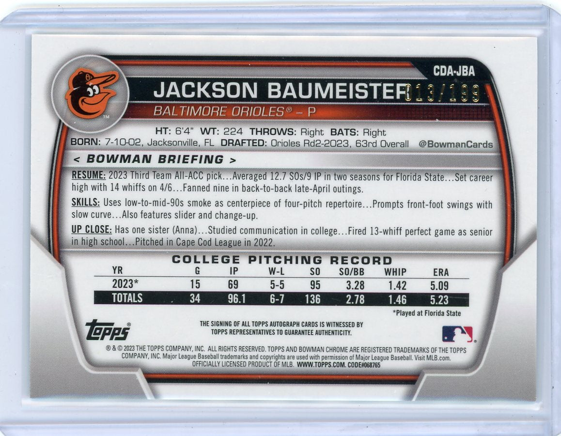 Jackson Baumeister 2023 Bowman Chrome 1st Bowman Aqua Lava Autograph #'d 013/199