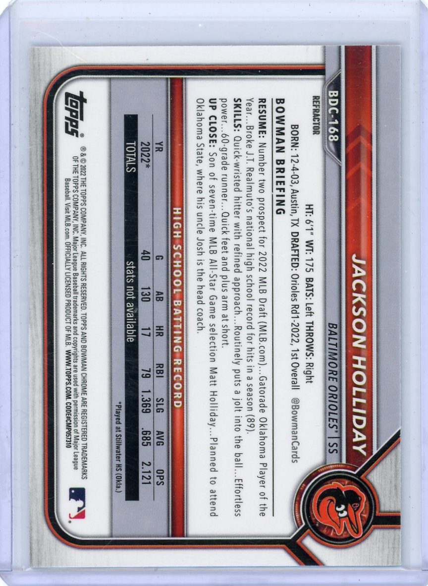 Jackson Holliday 2022 1st Bowman Draft Chrome refractor