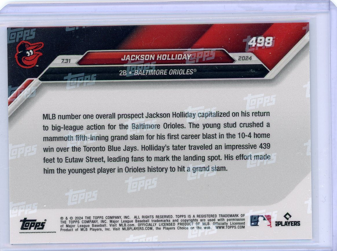 Jackson Holliday 2024 Topps Now #498 1st Career Homerun, Towering Grand Slam RC