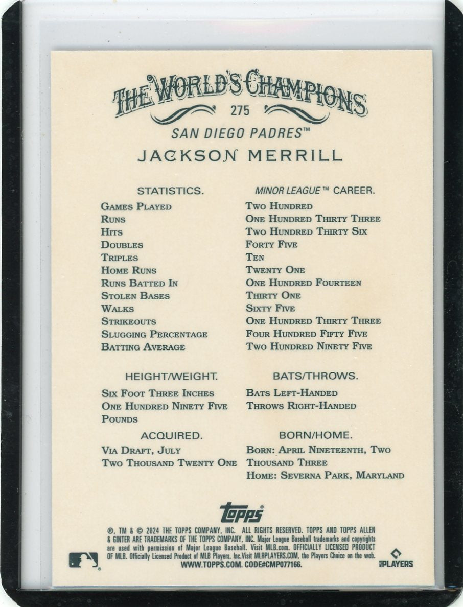Jackson Merrill 2024 Topps Allen & Ginter Chrome rookie card