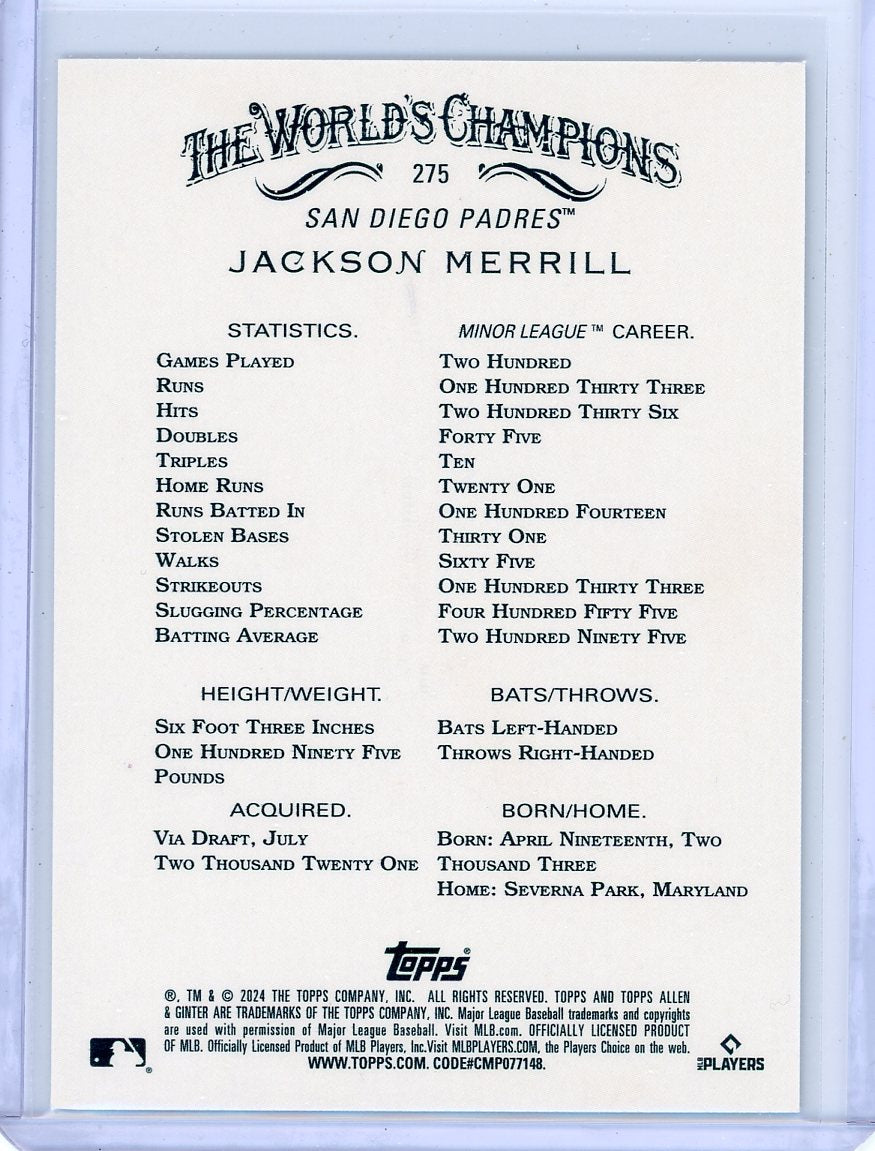 Jackson Merrill 2024 Topps Allen & Ginter Hot Box foil rookie card