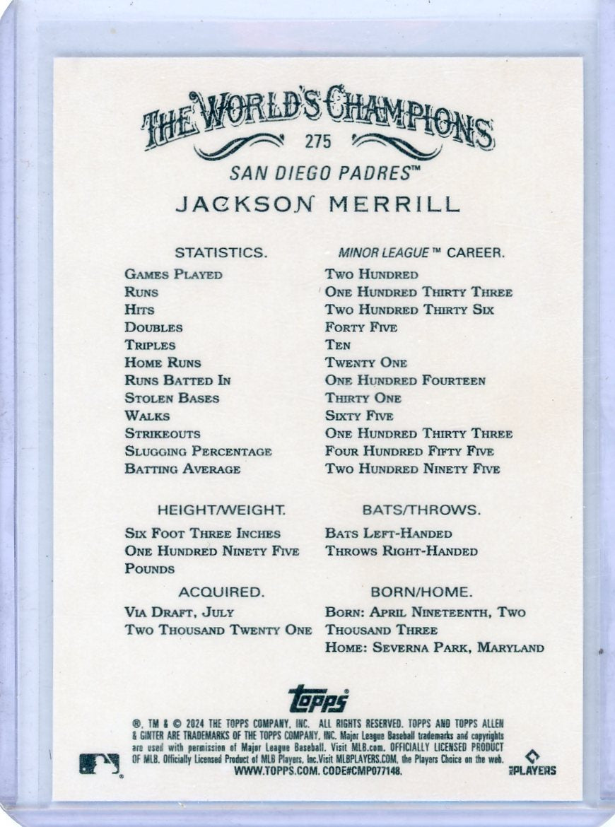 Jackson Merrill 2024 Topps Allen & Ginter rookie card