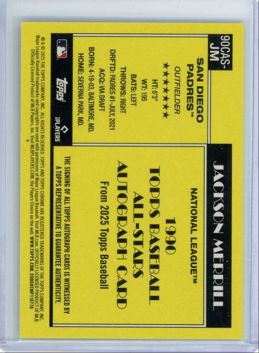 Jackson Merrill 2025 Topps Chrome 35th Anniversary Silver Pack Autograph