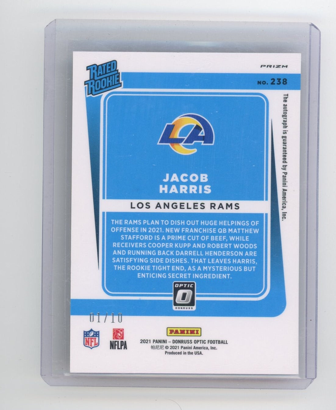 Jacob Harris 2021 Panini Donruss Optic Gold Prizm autograph rookie card #'d 01/10