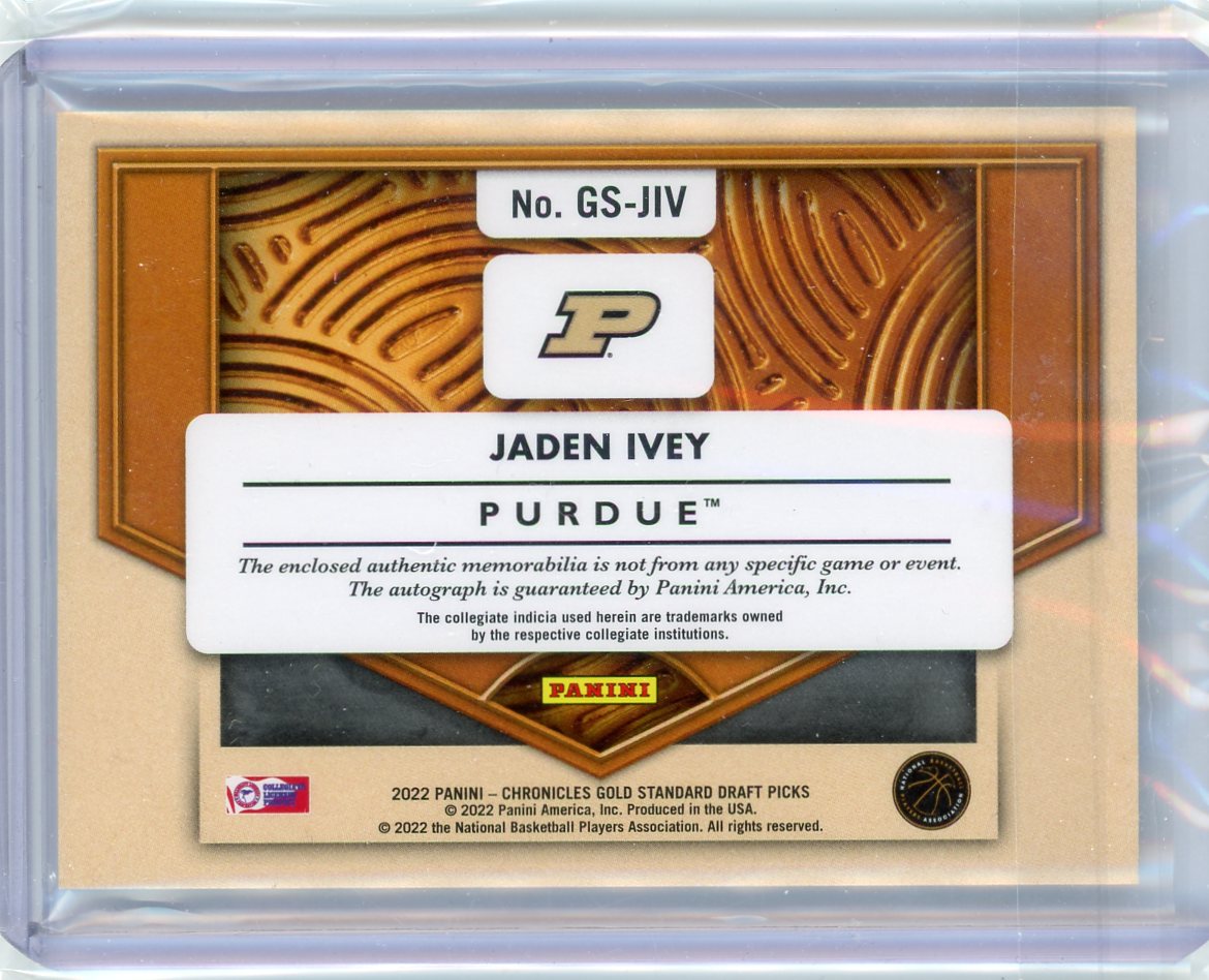 Jaden Ivey 2022 Panini Chronicles Gold Standard Draft Picks autograph relic #'d 93/99
