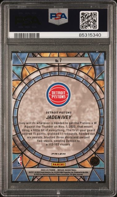 Jaden Ivey 2022 Panini Mosaic Stained Glass PSA 10