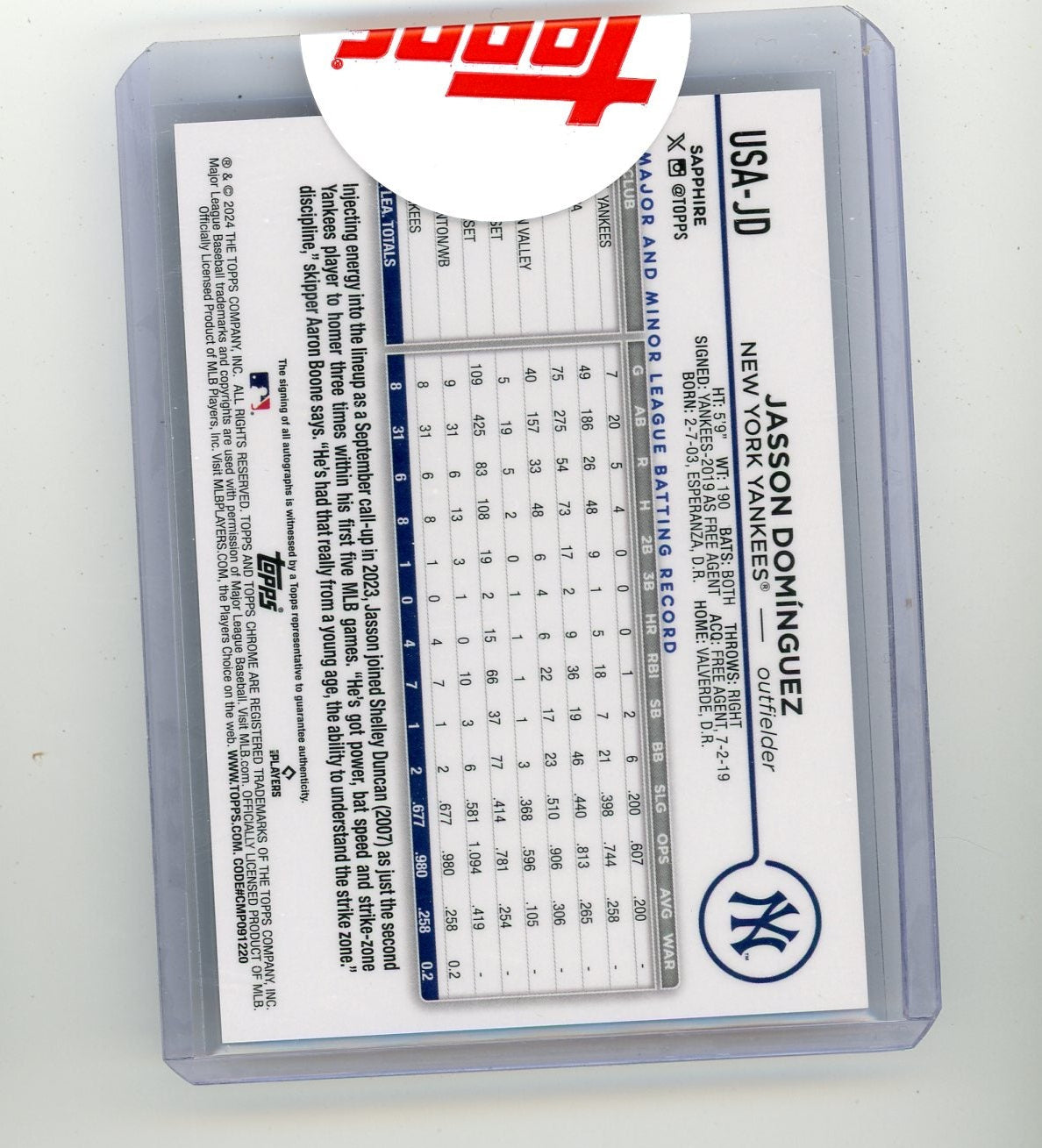 Jasson Dominguez 2024 Topps Chrome Update Sapphire Gold Auto #'d 13/50