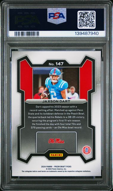Jaxson Dart 2024 Panini Prizm Draft Picks Rated Prospect PSA 10