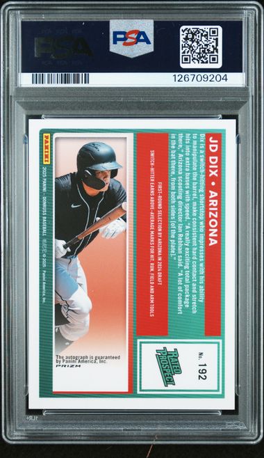 JD Dix 2025 Panini Donruss Optic Signature silver holo PSA 10 AUTO 10