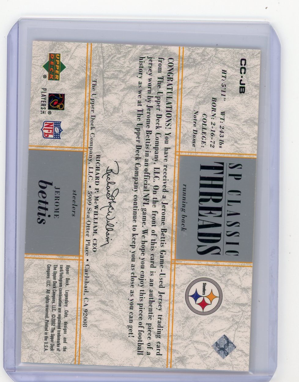 Jerome Bettis 2002 Upper Deck SP Legendary Cuts Classic Threads #'d 159/350