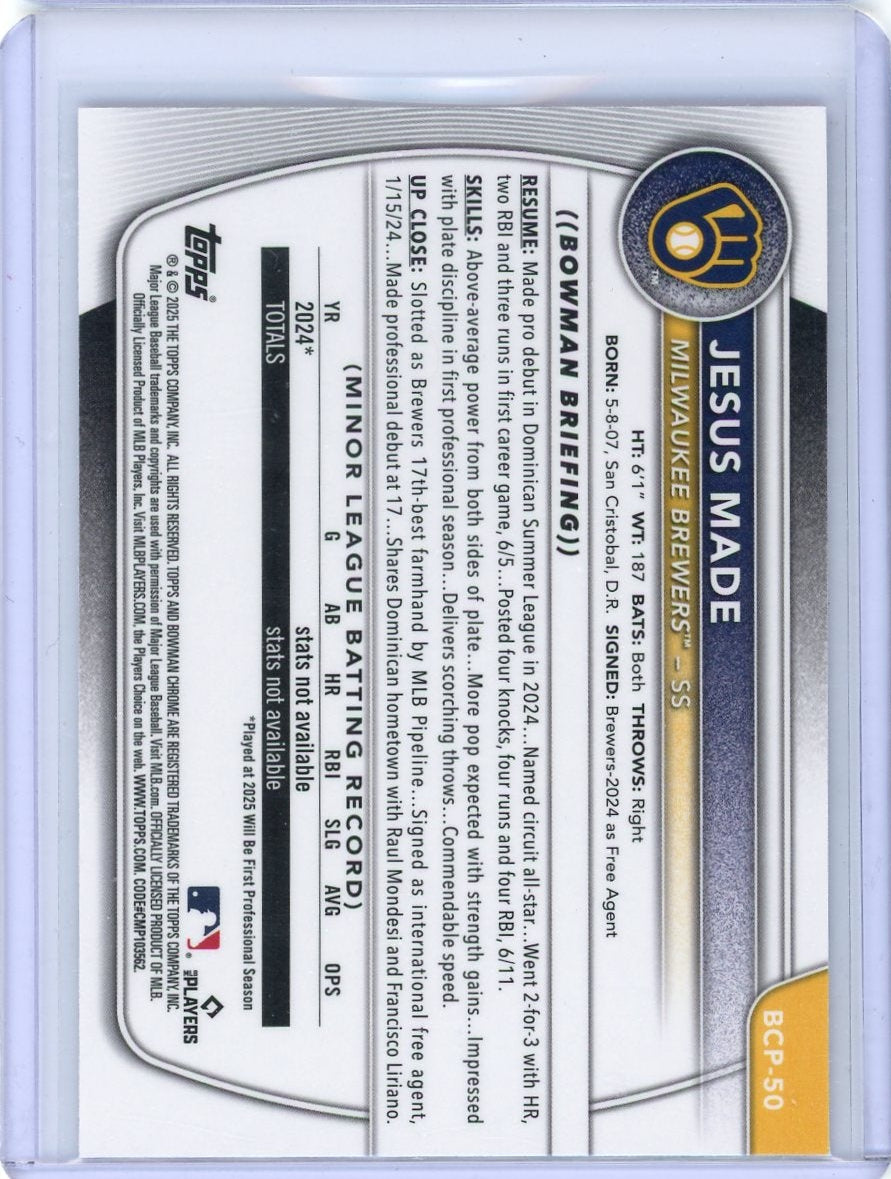 Jesus Made 2025 1st Bowman Chrome mojo fuchsia refractor #'d 151/199