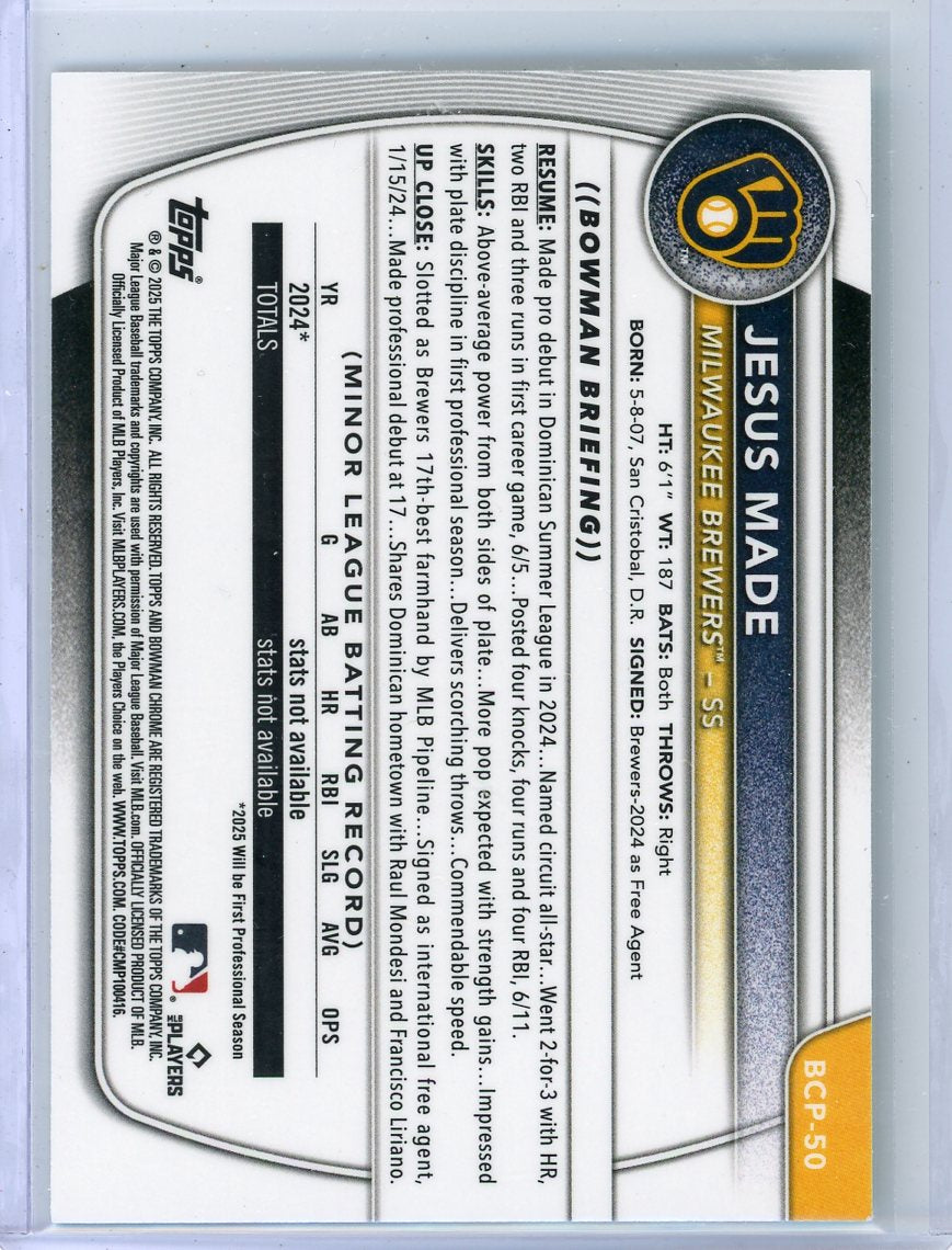 Jesus Made 2025 Bowman Chrome 1st Bowman Green Refractor #'d 75/99