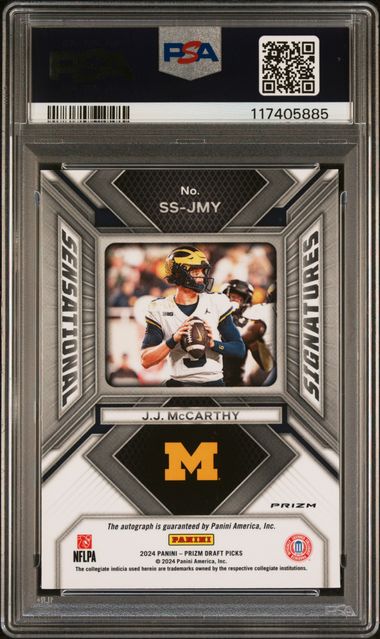 JJ McCarthy 2024 Prizm Draft Picks Sensational Signature Silver Prizm Autograph PSA 10 RC