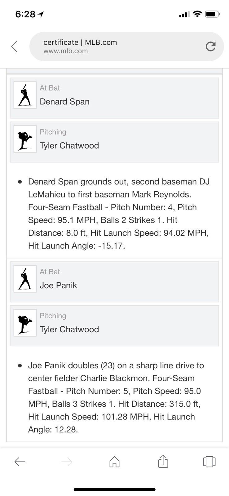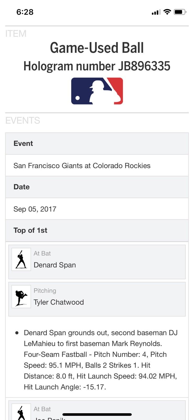 Joe Panik MLB Game Used Double Baseball 9/5/17 Giants vs Rockies Double #81 Mets