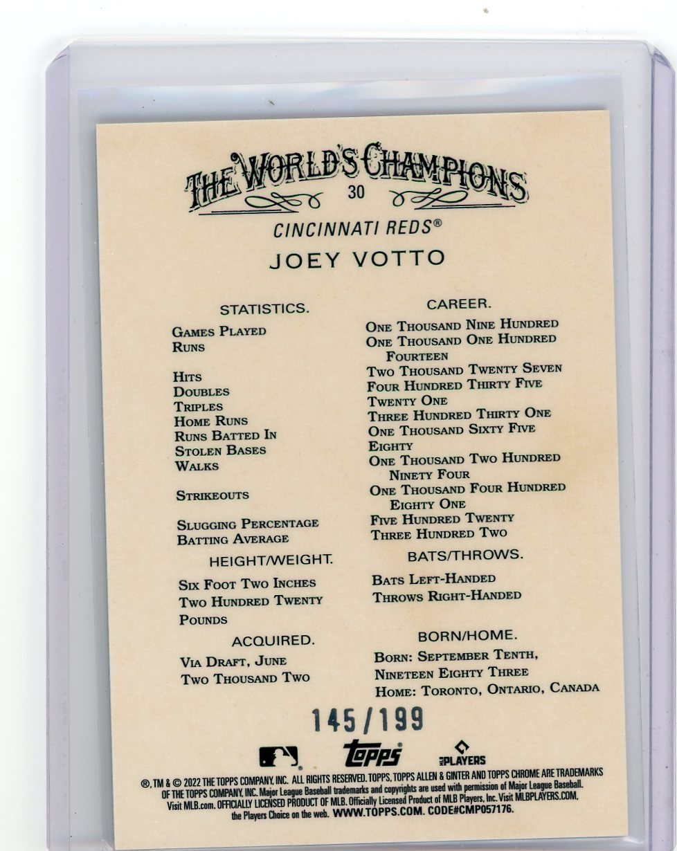 Joey Votto 2022 Topps Chrome Allen & Ginter Magenta Refractor #'d 145/199