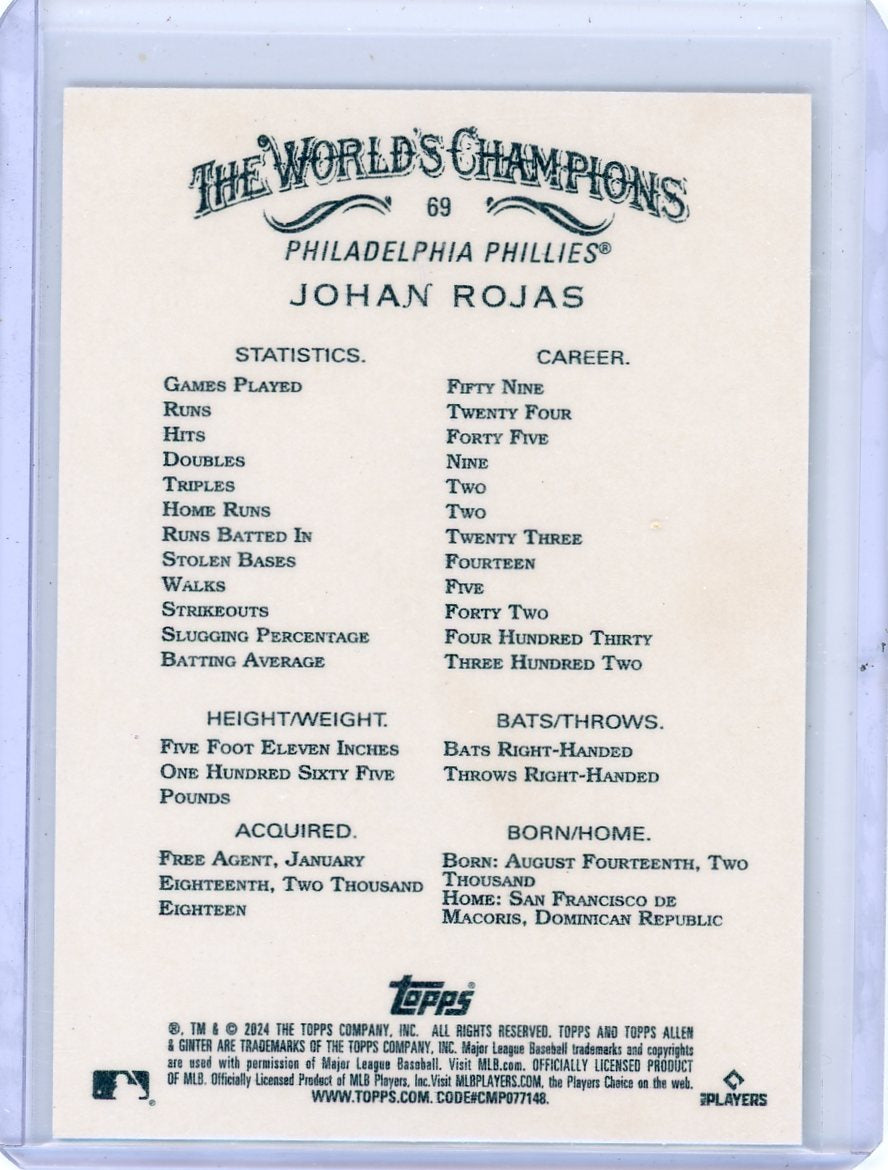 Johan Rojas 2024 Topps Allen & Ginter Gold Foil Filagree rookie card #'d 48/50