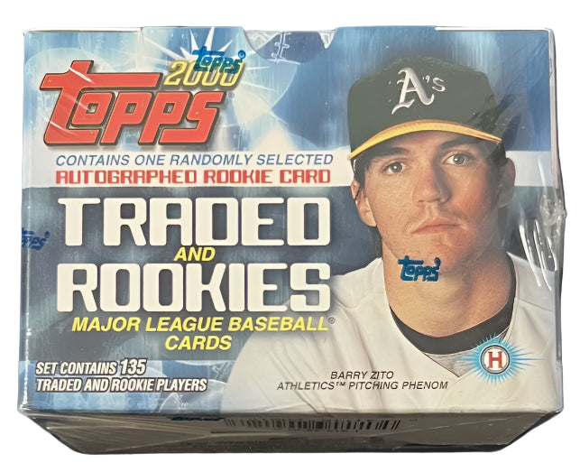 The 2000 Topps Traded sets were released in October 2000 and featured a 135-card base set, and one additional autograph card. Please note that each card in the base set carried a "T" prefix before the card number. Notable Rookie Cards include Miguel Cabrera, Adrian Gonzalez, Mike Young, Adam Wainwright, and Many More
