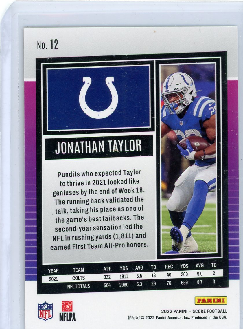 Jonathan Taylor 2022 Panini Score First Down orange foil #'d 06/10