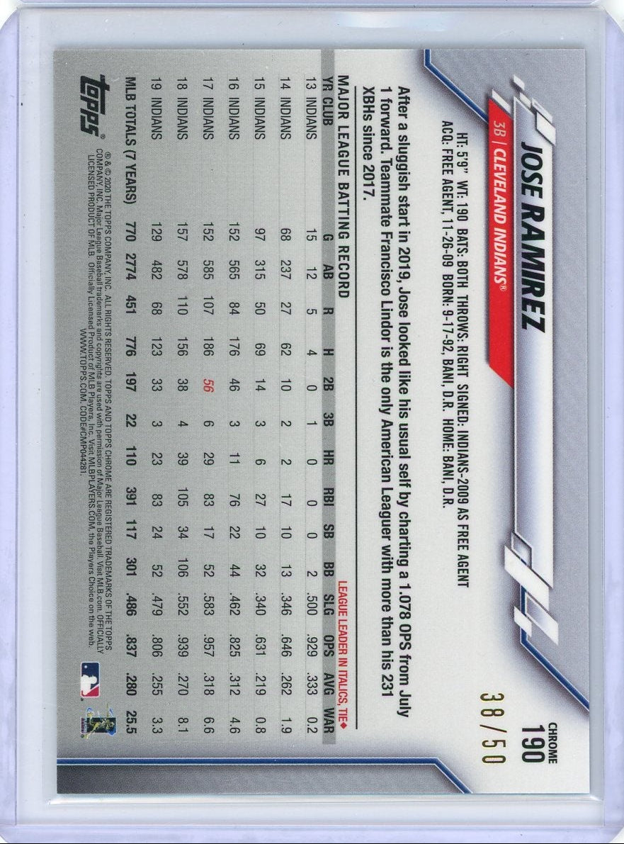 Jose Ramirez 2020 Topps Chrome Ben Baller gold ref. #'d 38/50
