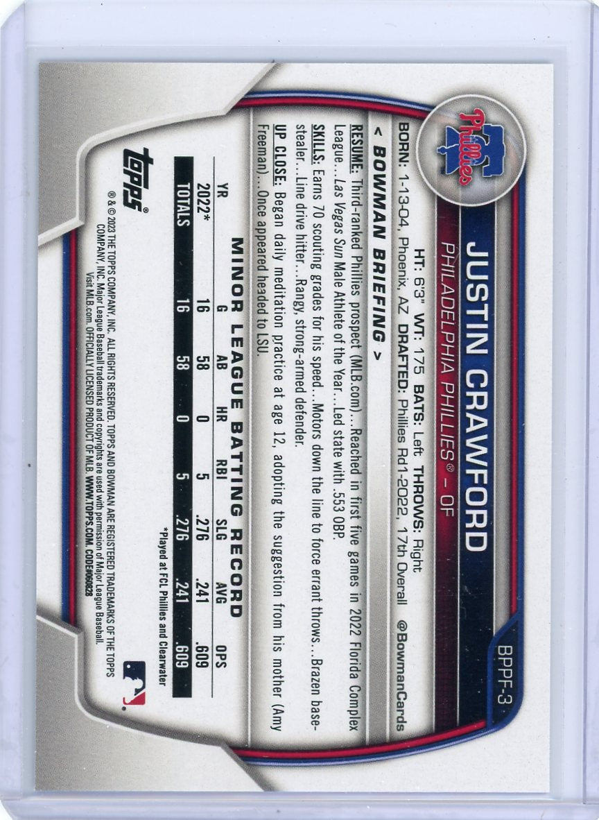 Justin Crawford 2023 1st Bowman Sky Blue 1st Edition foil