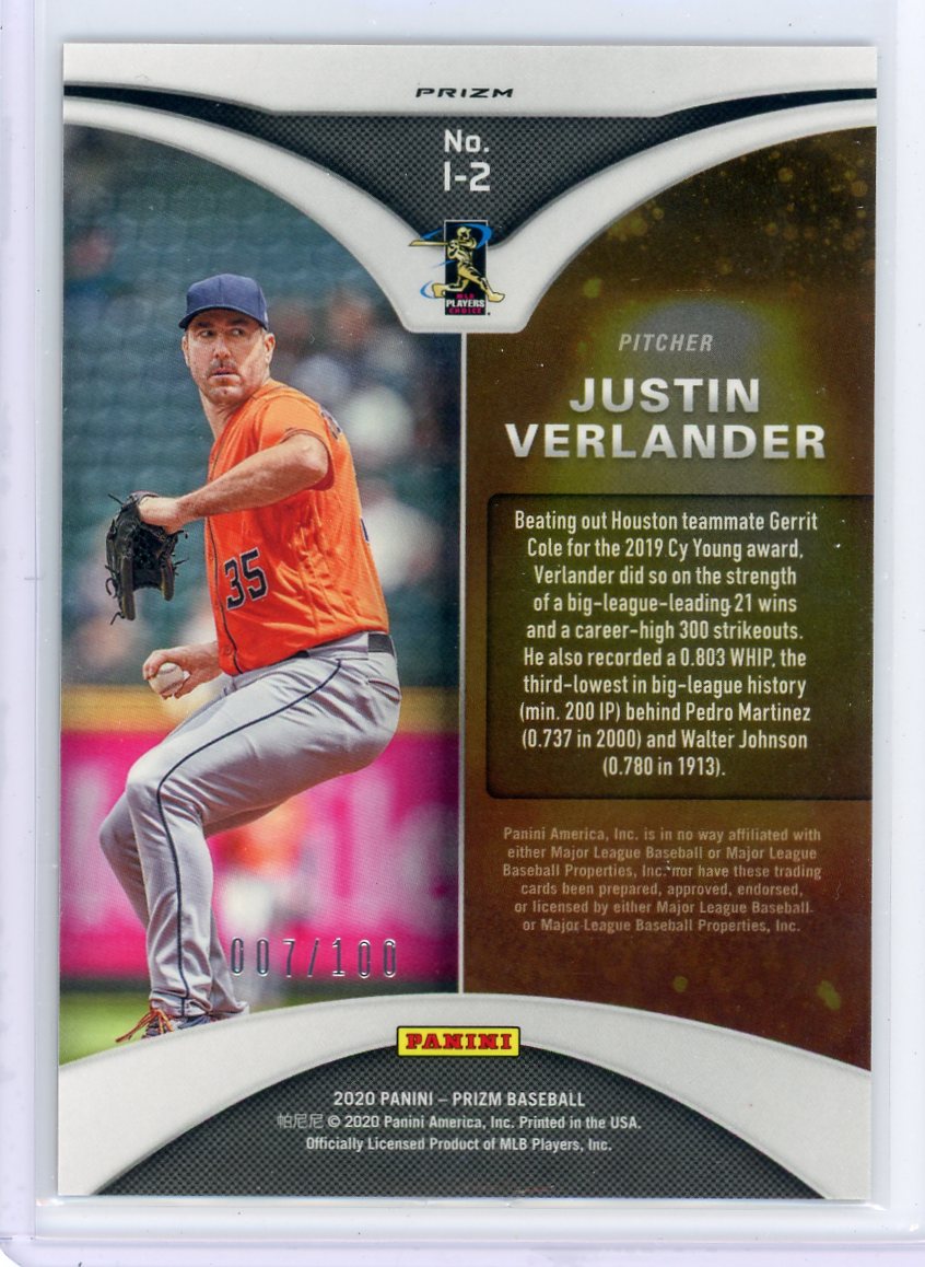 Justin Verlander 2020 Panini Prizm Illumination Orange Prizm #'d 007/100