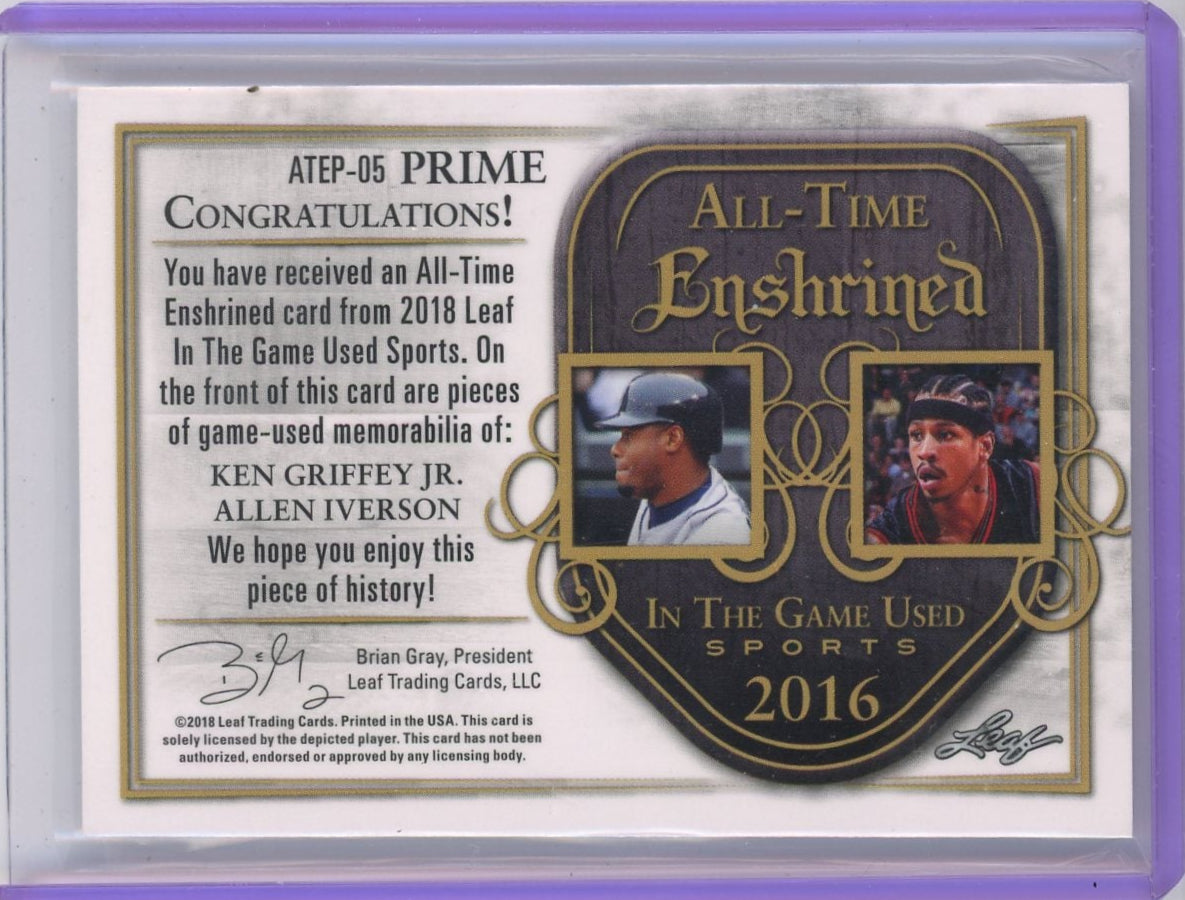 Ken Griffey Jr. / Allen Iverson 2018 Leaf All-Time Enshrined Dual Patch #'d 5/6
