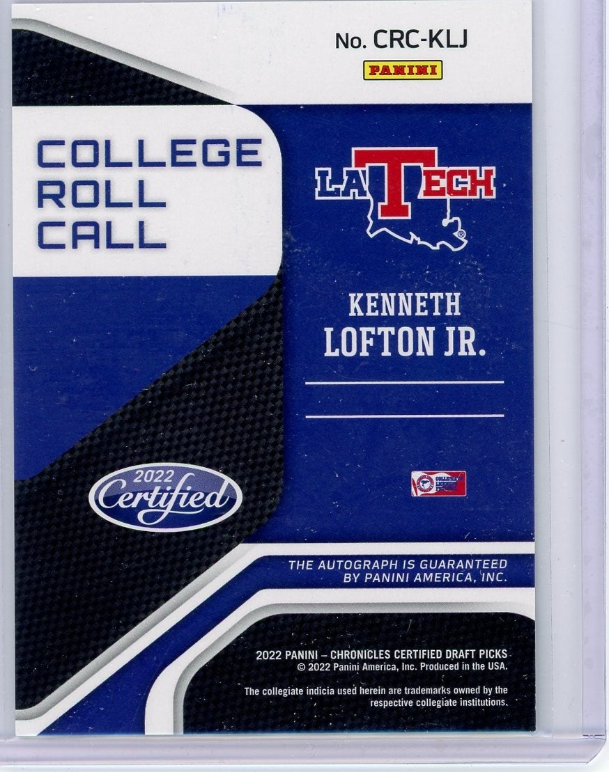 Kenneth Lofton Jr. 2022 Panini Chronicles Draft Picks Certified College Roll Call autograph